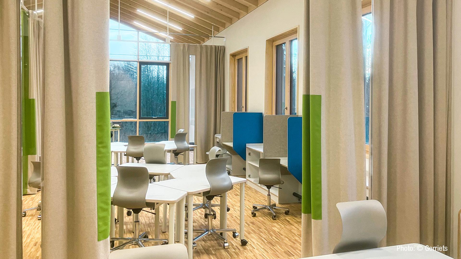 The Sound Curtain OFFICE sound curtains from Gerriets offer the possibility of privacy and Quiet, without to compromise the flexible and open learning landscape in the process.